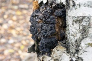 Der Chaga Pilz ist ein Baumpilz, der auf lebenden Birken wächst. Sein Aussehen erinnert an eine schwarze Knolle. Die äußere Kruste ist hart. Der Prozess des Wachstums findet in den folgenden Stufen statt: